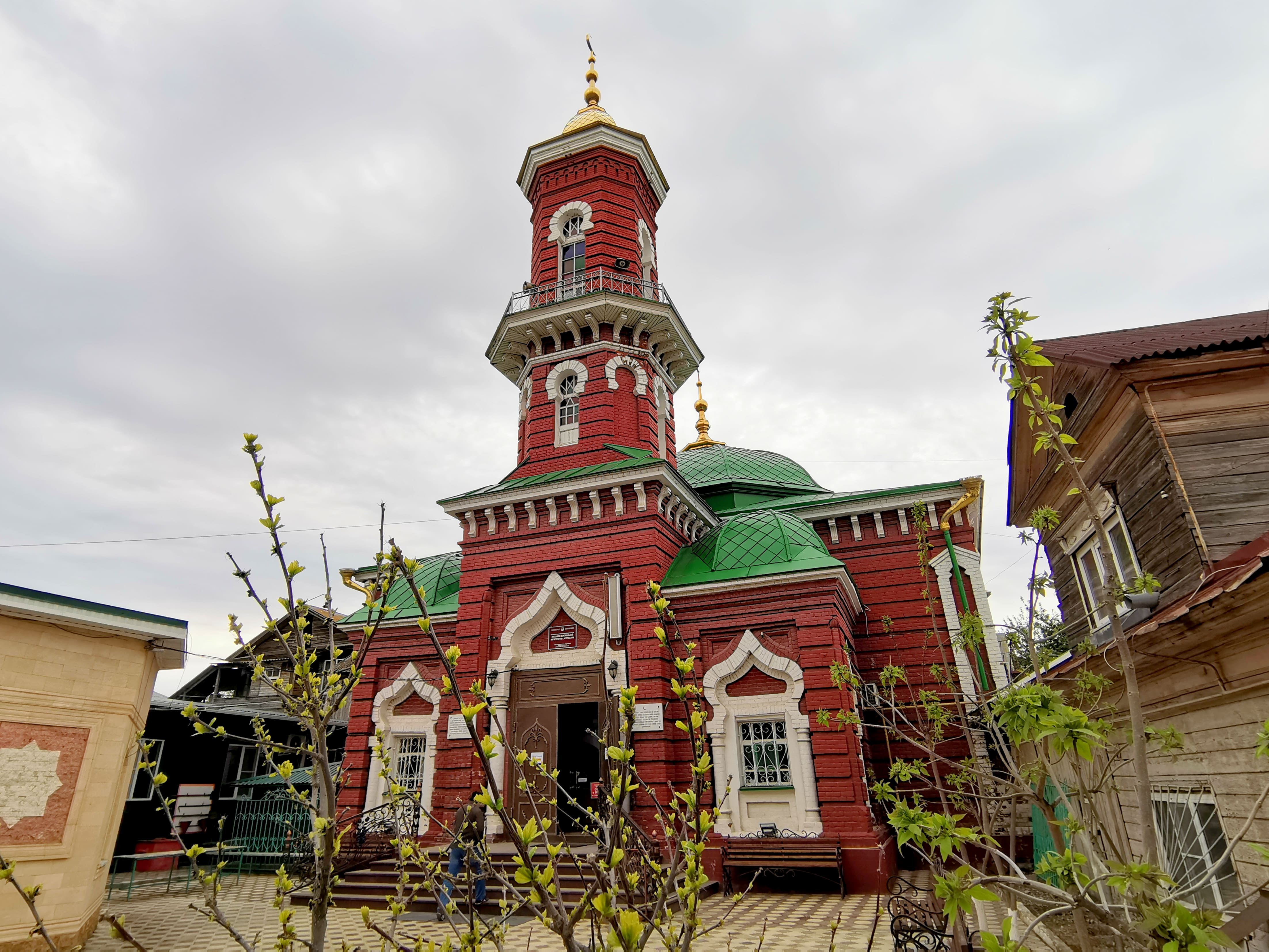 Мечети Астрахани, напротив, пахнут Европой. Вот самая старая Белая мечеть (1810) - вполне себе русский классицизм, только башенка-минарет поуже колокольни.