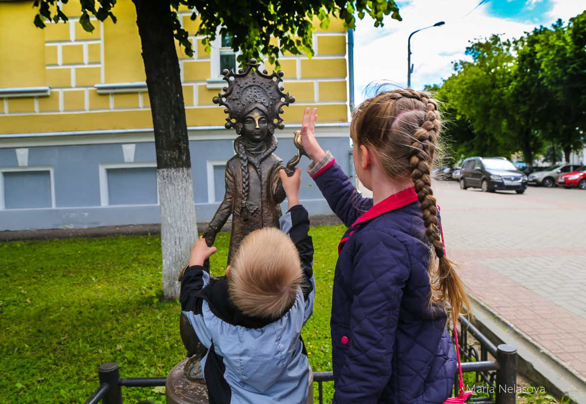 Здесь же рядом встречает гостей и памятник Снегурочке, ведь именно костромская природа вдохновила Николая Островского на написание «Весенней сказки».