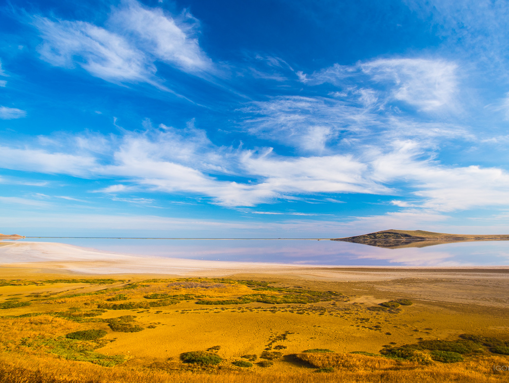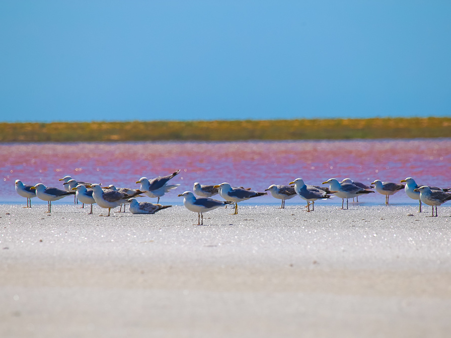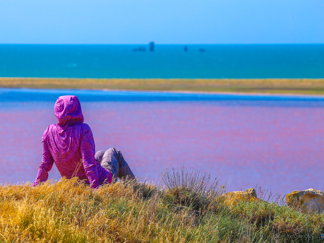 И не просто розовым, оттенки его переливаются от оранжевого до красного. Причина в обитающих в нем микроскопических водорослях и рачках артемия.