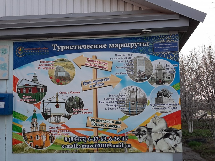 На территории одного района Волгоградской области находятся памятники трех религий - христианства, мусульманства и буддизма. Действительно, перекресток цивилизаций! Вместе с памятниками Великой Отечественной войны (памятник легендарной “Катюше”) и питомником собак Хаски получается полноценный туристический маршрут. Пожелаем удачи тем, кто бережно сохраняет живое наследие малой родины!