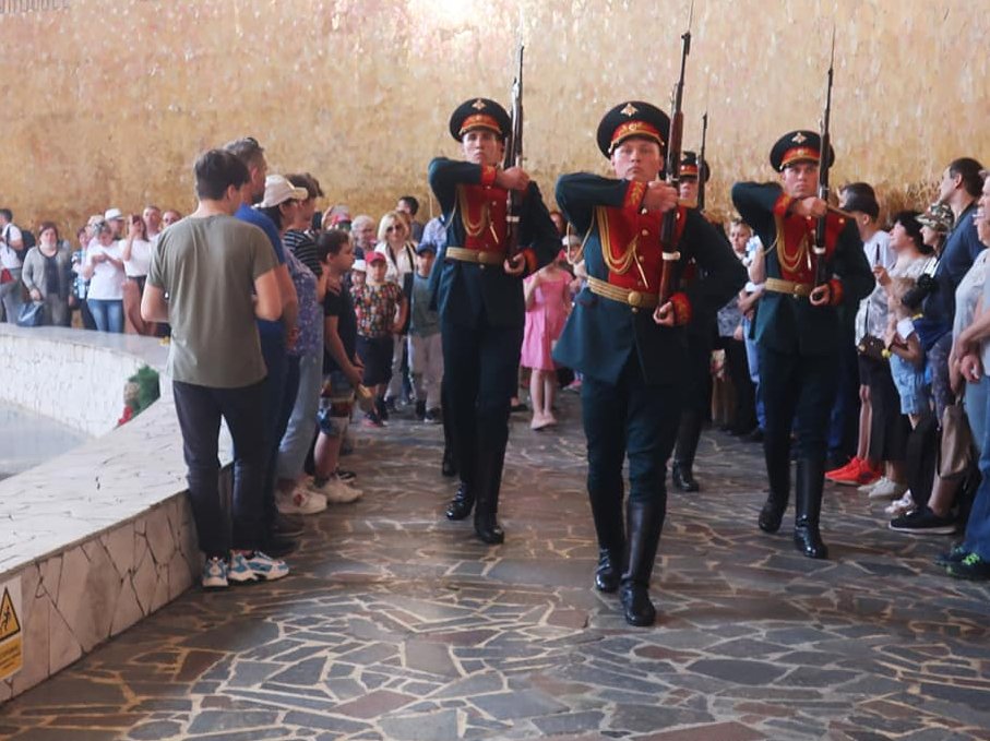 Солдаты роты почетного караула стоят, замерев перед памятью павших.