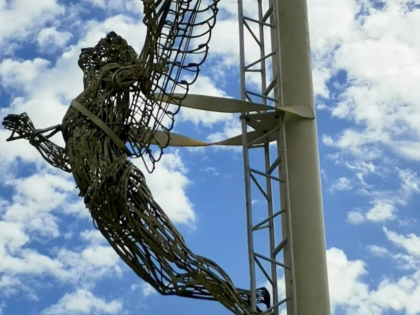 Ну а изначальный комплекс "Крыло Икара" тоже получил приличное будущее. В процессе развития городской среды вокруг него - на высоком берегу Ахтубы - появился симпатичный парк с композицией новых символов. Самолётик облетает зеленую планету, а мама с сыном шлют в небо посыл "Мы тебя ждём!". Птицы небесные кружат в лучах солнца, освещая путь Икару, который в упряжке с журавлями стремится сбросить страховку и вновь взметнуться ввысь!