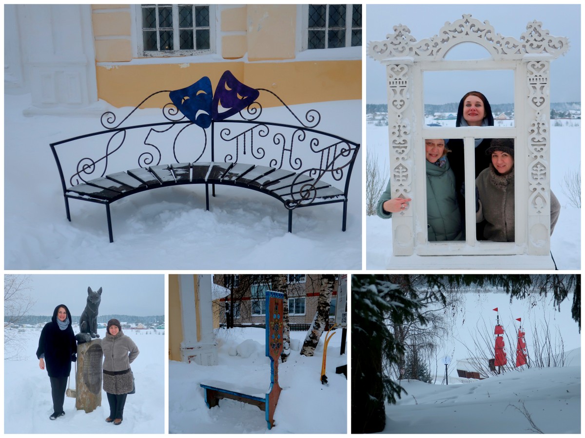 Вера показала много других мест, которые благодаря неравнодушным тотьмичам стали украшением города – деревянные и чугунные скульптуры, скверы, необычные скамейки, арт-объекты, старые дома…