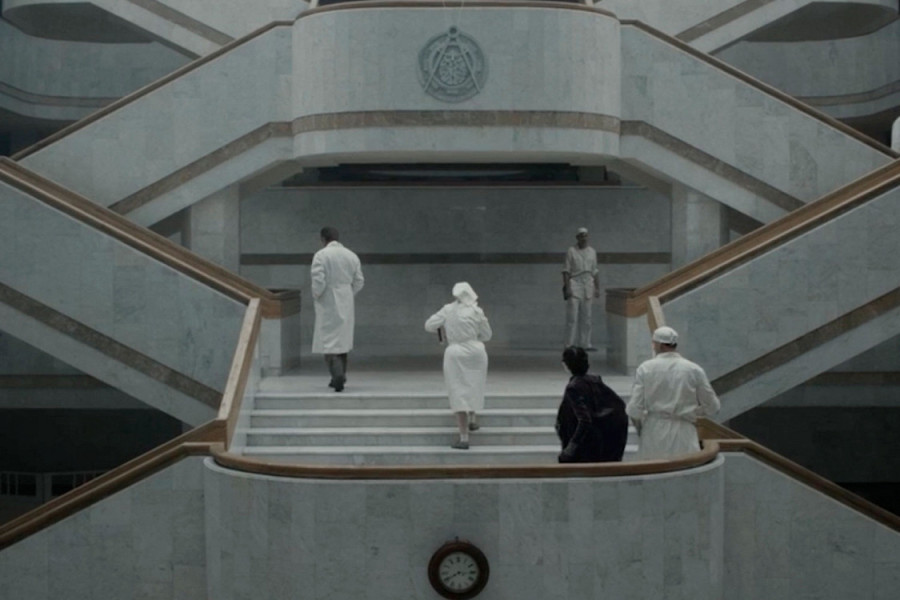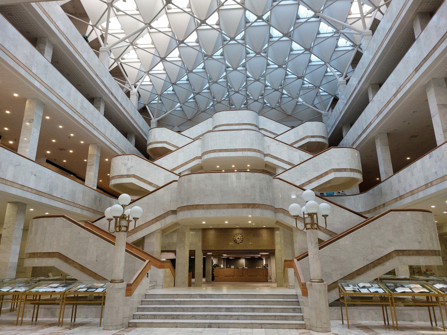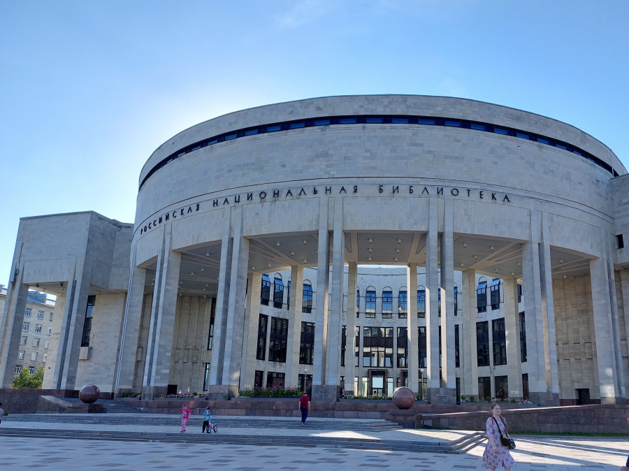 Еще несколько ближе к центру находится новое здание Российской национальной библиотеки. Этот крупнейший в Европе библиотечный комплекс строился почти 50 лет и был открыт несколько лет назад. Его парадную лестницу можно также увидеть в фильме “Мастер и Маргарита”, в котором библиотека “играла роль” психиатрической больницы. Если интересно, можно зайти в здание библиотеки и увидеть знаменитую лестницу “вживую”, тем более, что библиотека находится рядом с гостиницей “Россия”.