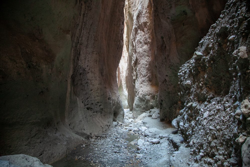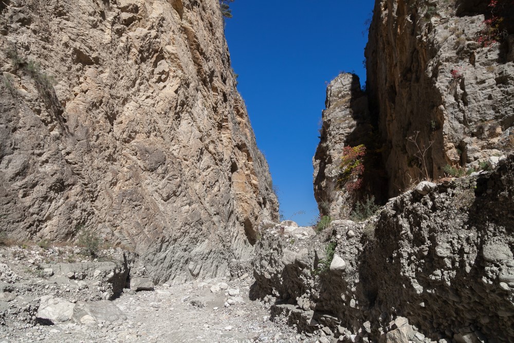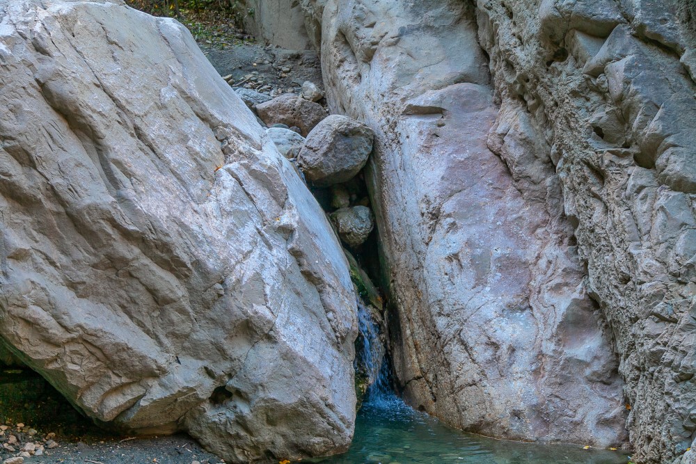 Гладкие отвесные скалы уходят вверх на 150 метров, а над самим ущельем местами нависают огромные валуны, зажатые между стен. Людям, которых пугают замкнутые пространства, сюда лучше не соваться.