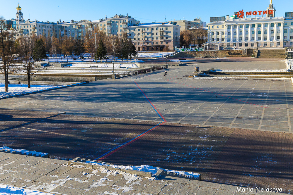 Гулять по Екатеринбургу просто. Цветные линии на асфальте- ведут вас по маршрутам и достопримечательностям.
