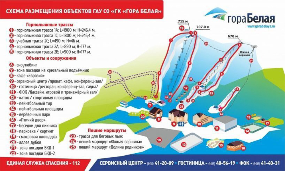 Территория туристического кластера Гора Белая это - 2500м2, шестнадцать населенных пунктов и более ста природных достопримечательностей. Кроме того, здесь имеется пять горнолыжных трасс, две трассы для беговых лыж, прокат оборудования и снаряжения, Сноутюбинг.