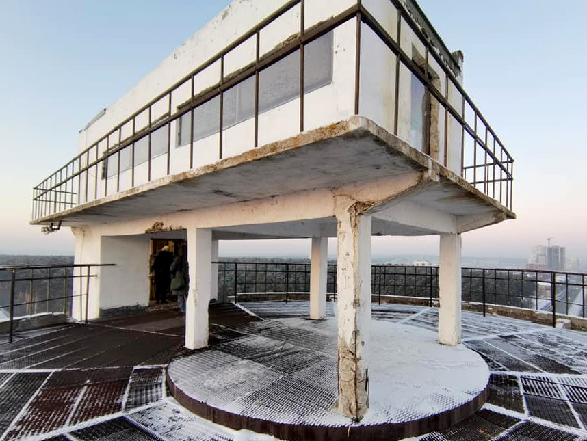 Завершая эпоху конструктивизма, создатели башни серьёзно расширяют функции сооружения. В высоком стилобате здесь проектируется автобусная остановка и газетный киоск, над ним на семи слонах (пардон, столбах) - огромный цилиндр для хранения воды, выше - смотровая, а над ней - пункт пожарного наблюдения.
