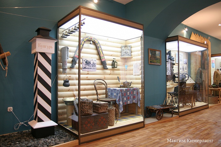 Экспозиция музея расположена в здании Малого гостиного двора, которое было построено в 1874 году на средства купца-чаеторговца М. И. Грибушина. История великого Сибирского тракта, кожевенно-обувное дело, производство керамики, хлеботорговля и чаеторговля, меценатство, купеческий быт – вот лишь немногие разделы экспозиции. Особенная ценность – сохранившиеся Царские врата XVIII века Благовещенского собора Кунгура.