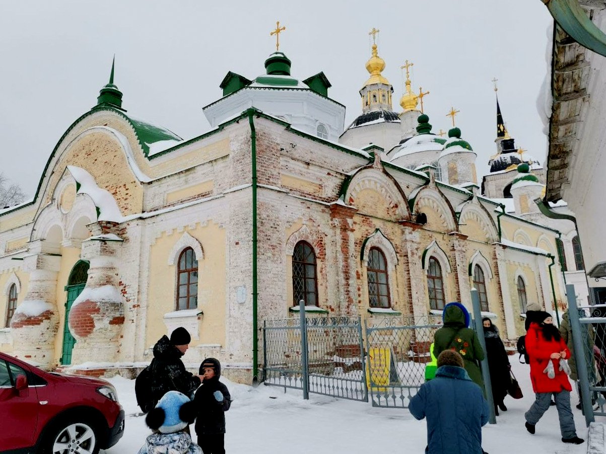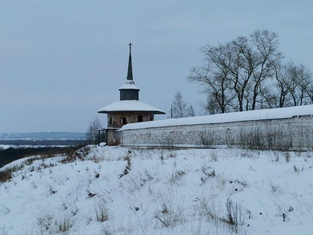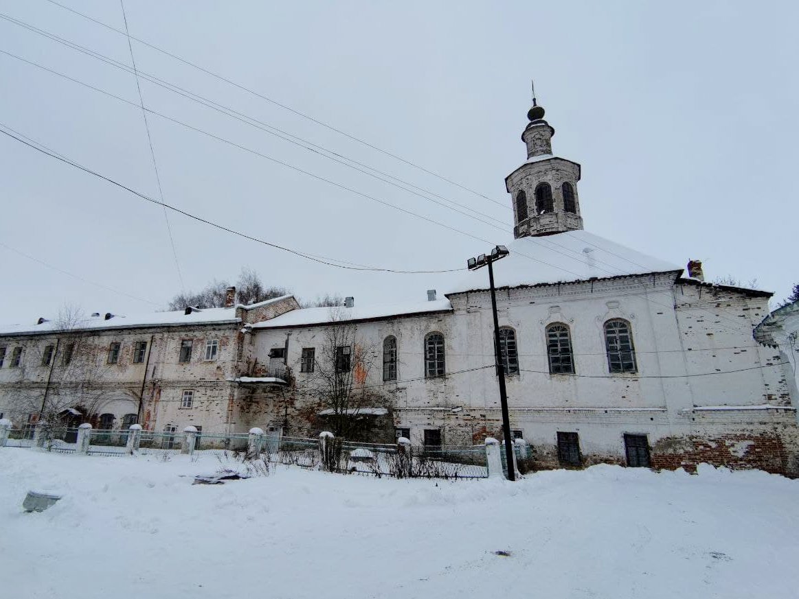 Дальше по курсу в город - Дымковская слобода. Нет, не здесь родилась дымковская игрушка. Она в соседней вятской (кировской) земле. Но, весьма, вероятно, та Дымка была основана выходцами из этой. Сегодня здесь стоит очень гармоничный комплекс из двух храмов XVIII века.