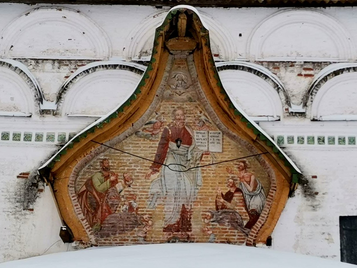 А вот Собор Прокопия Праведного (1668) - цельный и подлинный памятник XVII века. Фрески с евангельскими сценами в закомарах сохранены и впечатляют.