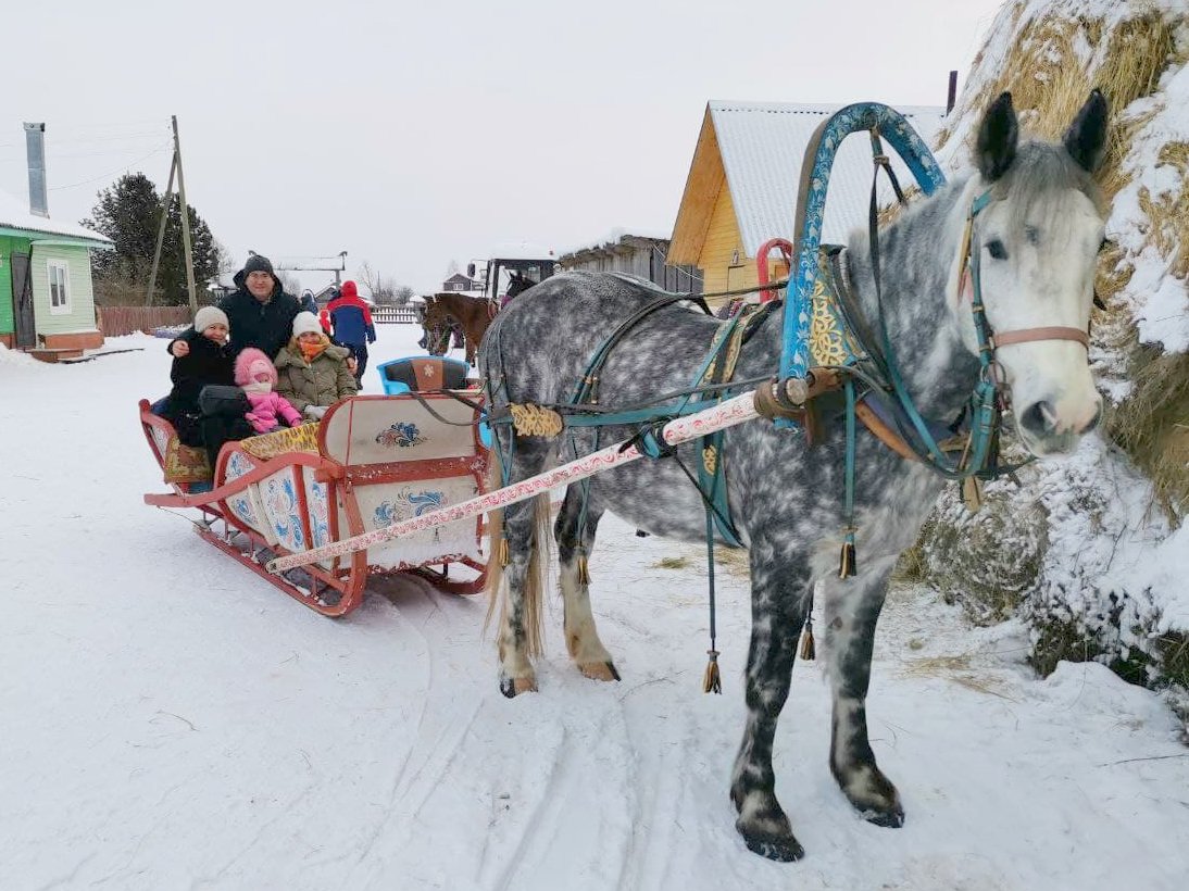 Рядом в деревне Барсуково открыли конный двор, где можно покататься на конях и везомых ими каретах и санях, словно вернувшись в век величия Устюга.