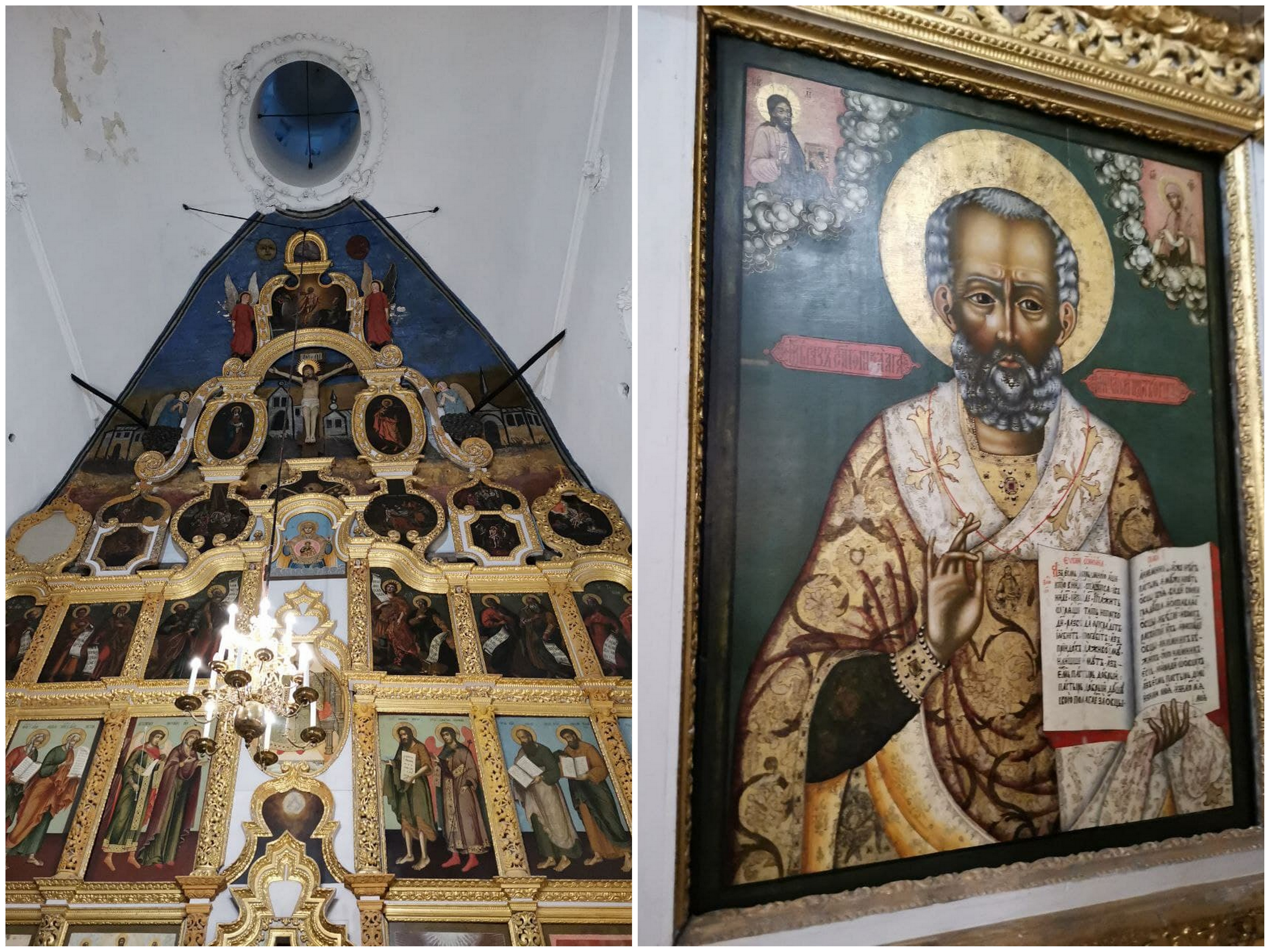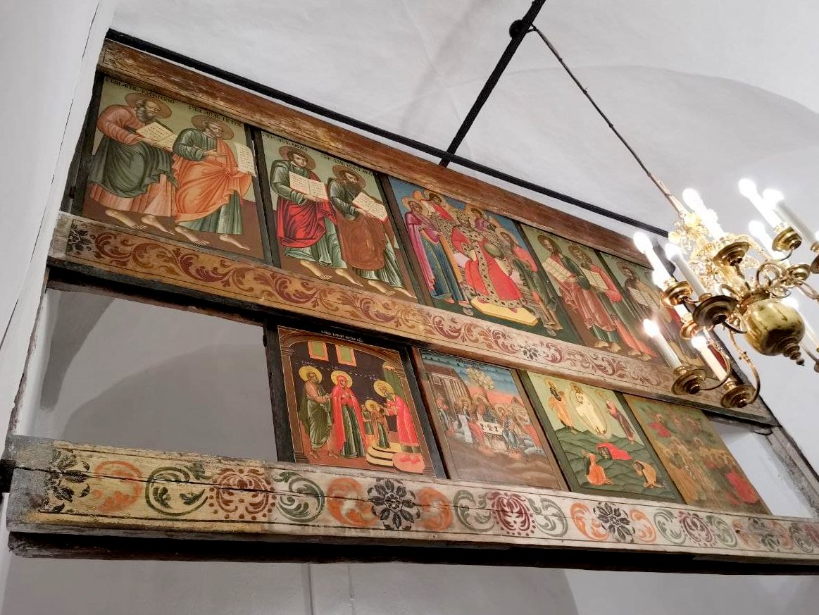 Сюда можно заглянуть почти через "замочную скважину" - в окошко сверху, а ещё посмотреть устройство "тяблового" иконостаса (расстановка икон на горизонтальных досках) - такие "дешёвые" конструкции были до реформ Никона почти во всех храмах.