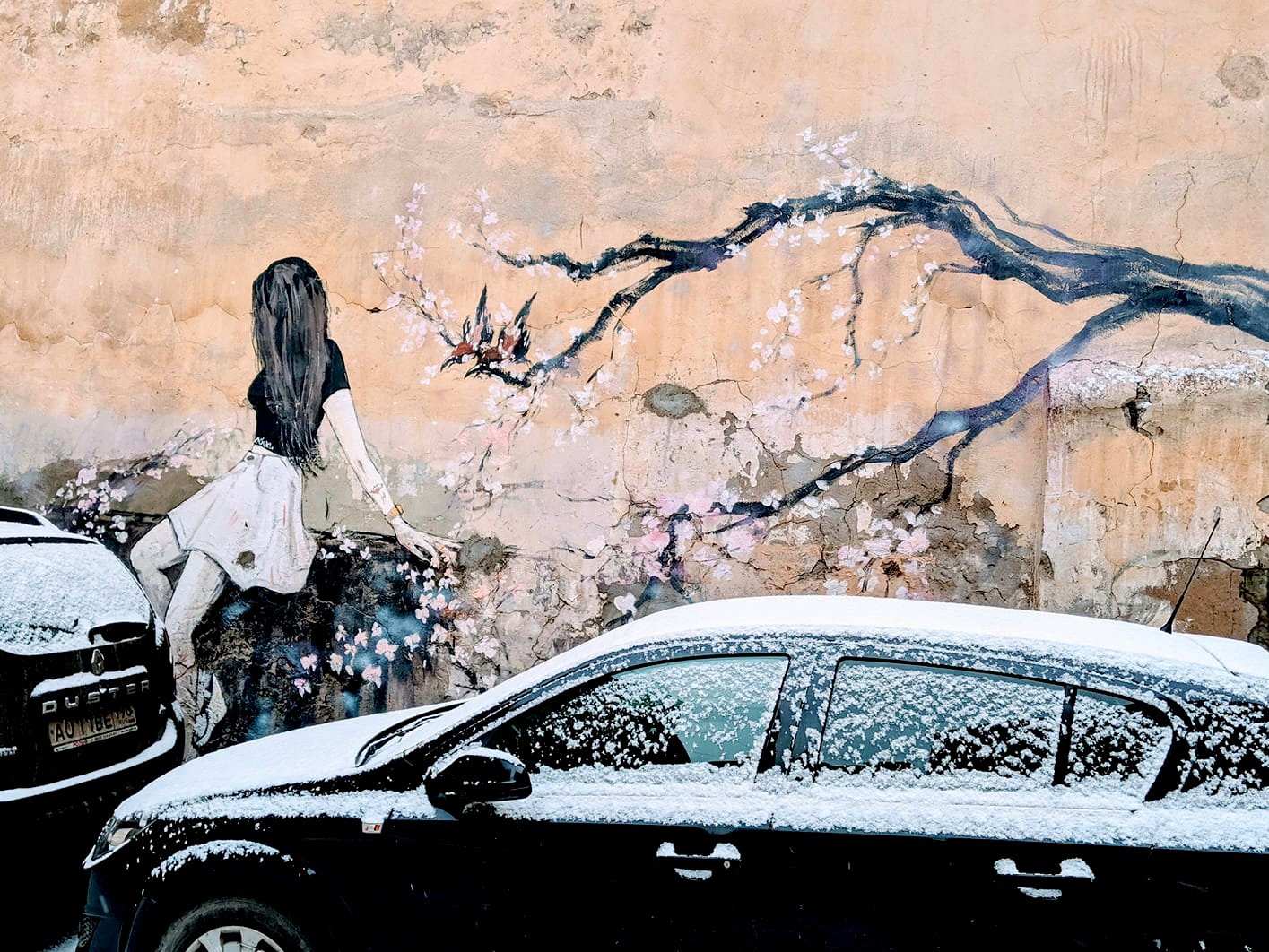 ...А зимой нам напомнит о красоте весны вот это граффити в питерском дворе.