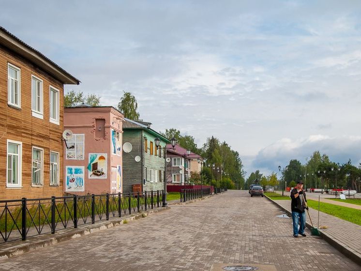 ... Когда едешь в Вельск, мало что о нем зная, воображаешь какой-то серенький северный городишко, в котором деревянные срубы перемежаются с типовыми двухэтажками. Но приедем сюда "утренней лошадью" (ночь от Москвы), сразу выйдем на набережную, и город мгновенно расцветет в наших глазах. Многоцветье деревянных крашеных домиков, беседка-ротонда, фонтанчик, белёные купеческие особняки, новенькая ненавязчивая плитка, расписанная картинами и стихами трансформаторная будка...